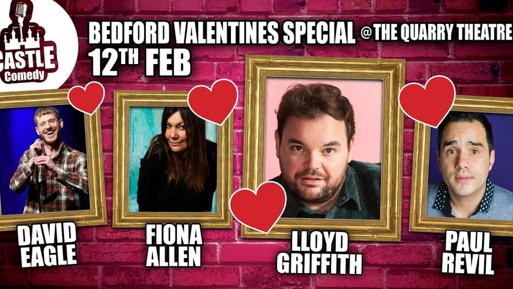 Celebrate Valentine’s with laughter at the Castle Comedy Valentine’s Special at The Quarry Theatre, Bedford, on Thursday 12th February 2026. This much-loved annual show promises a night of big laughs, romantic surprises, and feel-good fun. Famous for its warm atmosphere, the event even played host to a successful marriage proposal in 2021.
