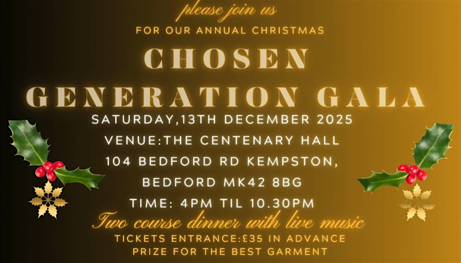 Chosen Generation Young Adults ministry is hosting a Christmas Gala party at the Centenary Hall. Lots of festive fun awaits.