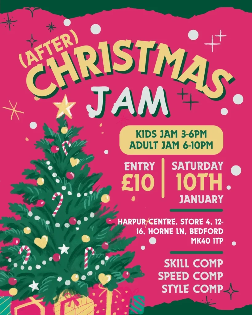 Spiral Freerun is hosting its (After) Christmas Jam on Saturday, 10th January at their Harpur Centre location (Store 4, 12–16 Horne Lane, Bedford, MK40 1TP).