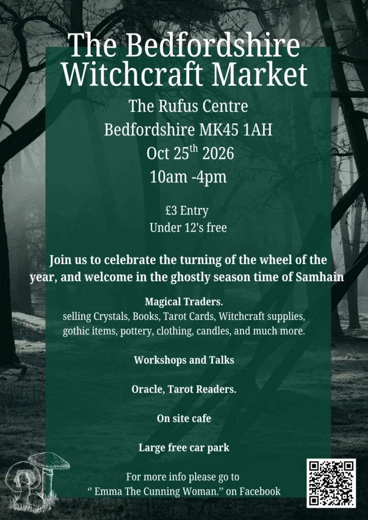 Join The Bedfordshire Witchcraft Market ( formally the Cambridge Witchcraft Market) at our brand new home, the Rufus centre Flitwick in magical Bedfordshire. To celebrate the turning of the Pagan wheel of the year, as it heads towards the most Gothic-ly, creep-ily, spook-ily time of the year Samhain ( other wise know as Halloween).