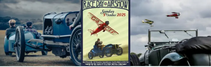 Shuttleworth’s Air Show season concludes on Sunday 5th October with their Race Day Air Show, a classic blend of vintage aircraft and vehicles that share a common theme: speed.